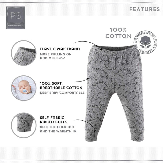 Baby Pants for Boys, 5 Pack Set, Camo Dinosaur, Newborn to 24 Month Sizes